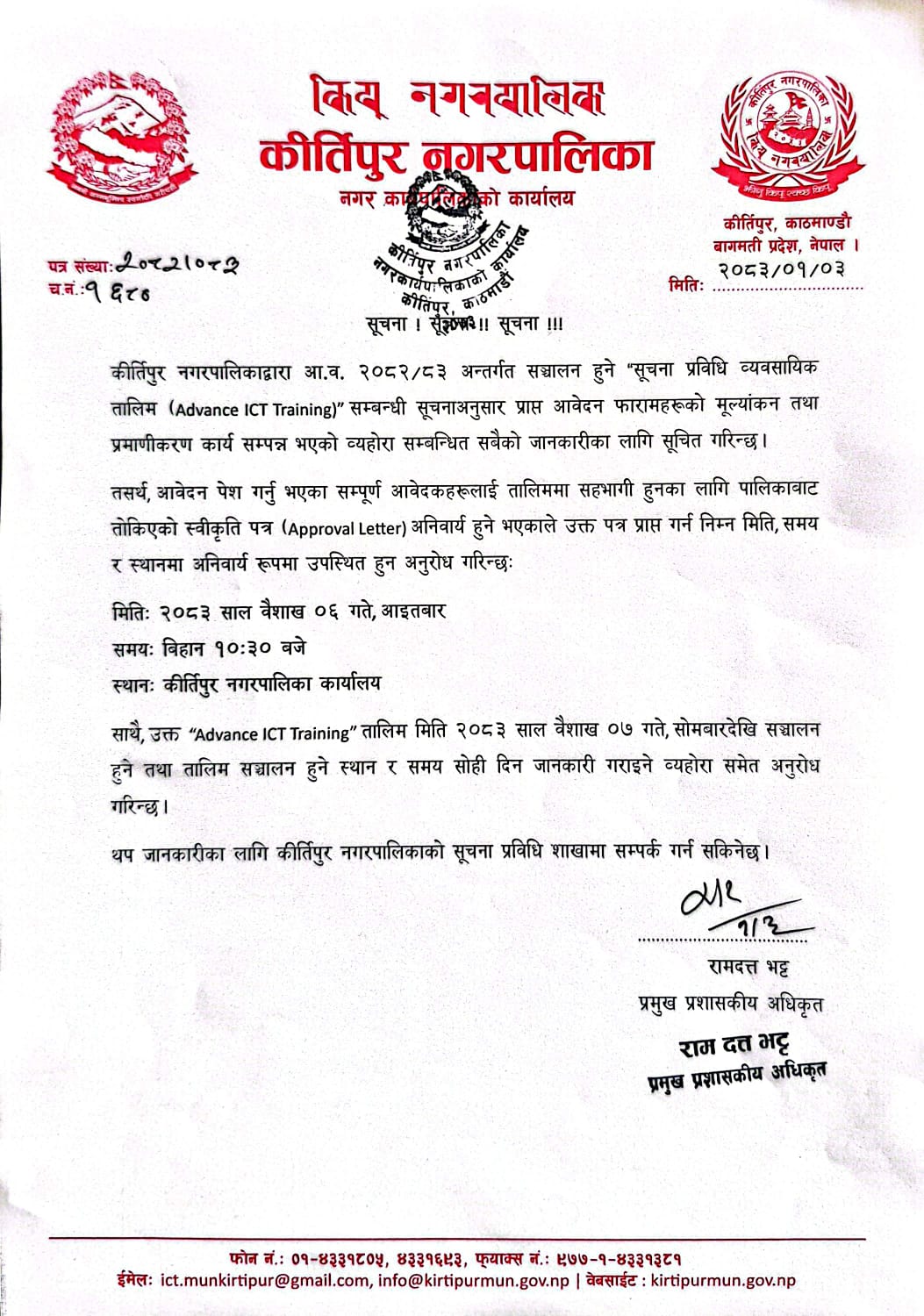 Advance ICT तालिम स्वीकृति पत्र वितरण सम्बन्धी सूचना
