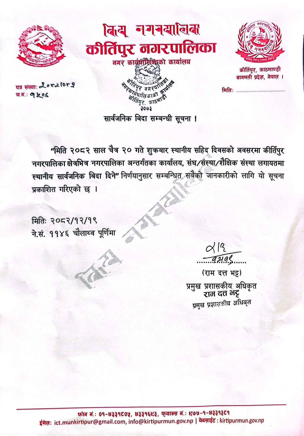 इमेल: info@kirtipurmun.gov.np