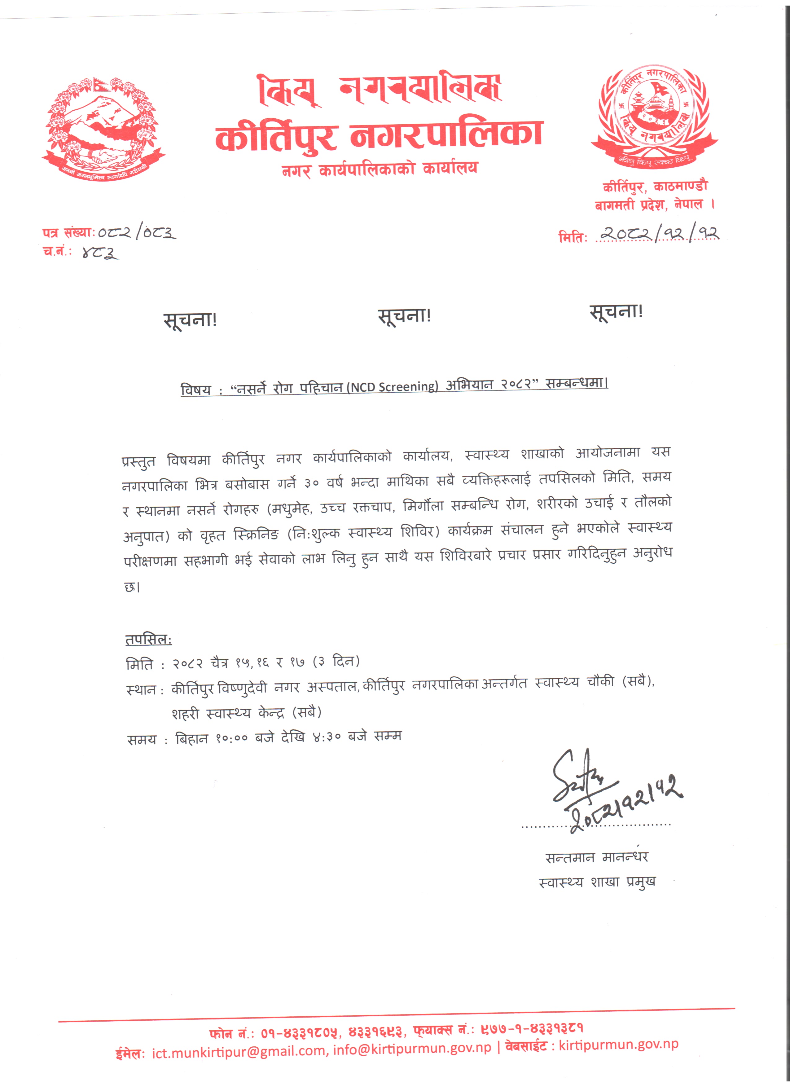 नसर्ने रोग पहिचान अभियान २०८२ सम्बन्धी सूचना।