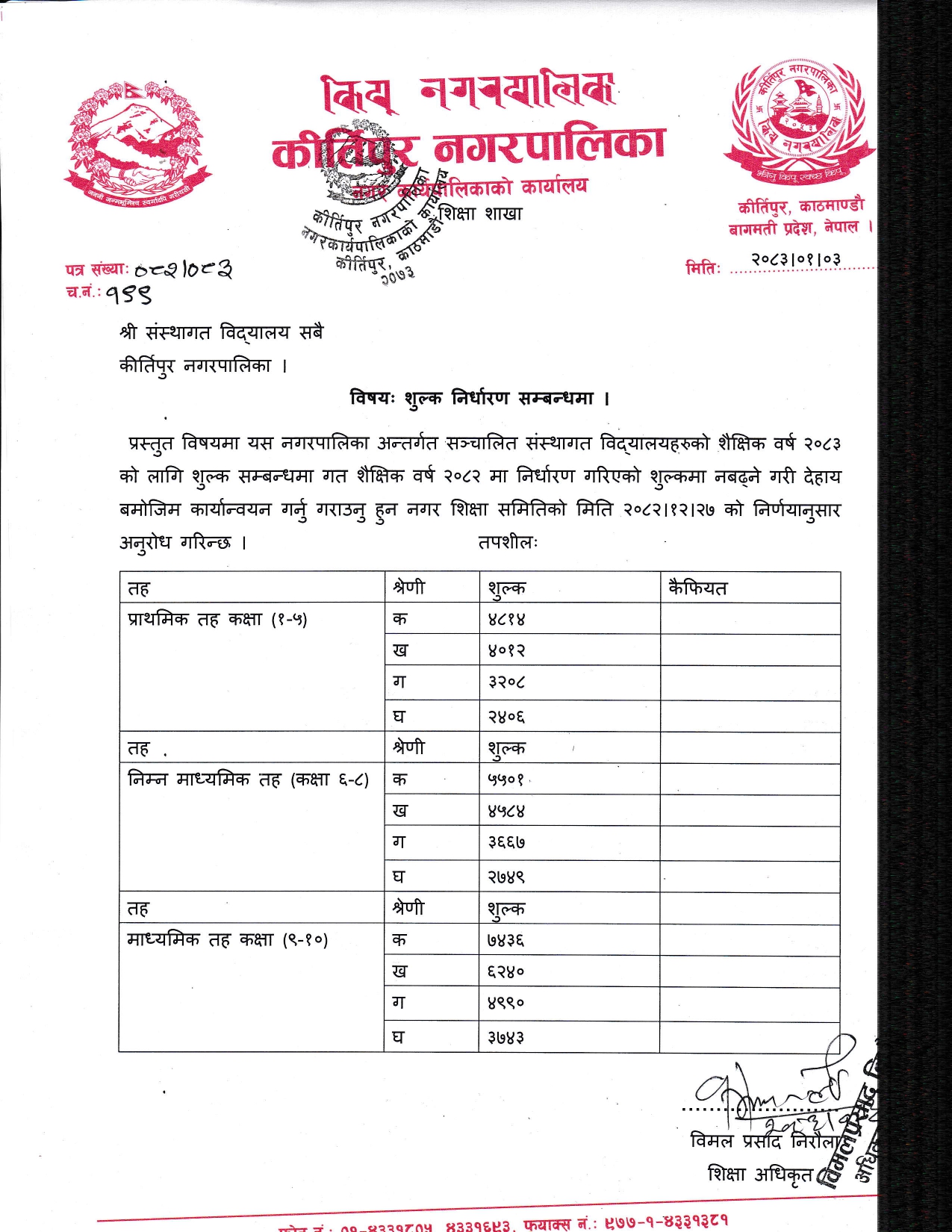 फोन नम्बर: ०१-४३३१११०, ०१-४३३१३८१
