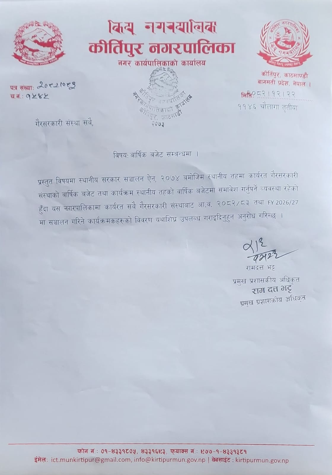 Email: info@kirtipurmun.gov.np