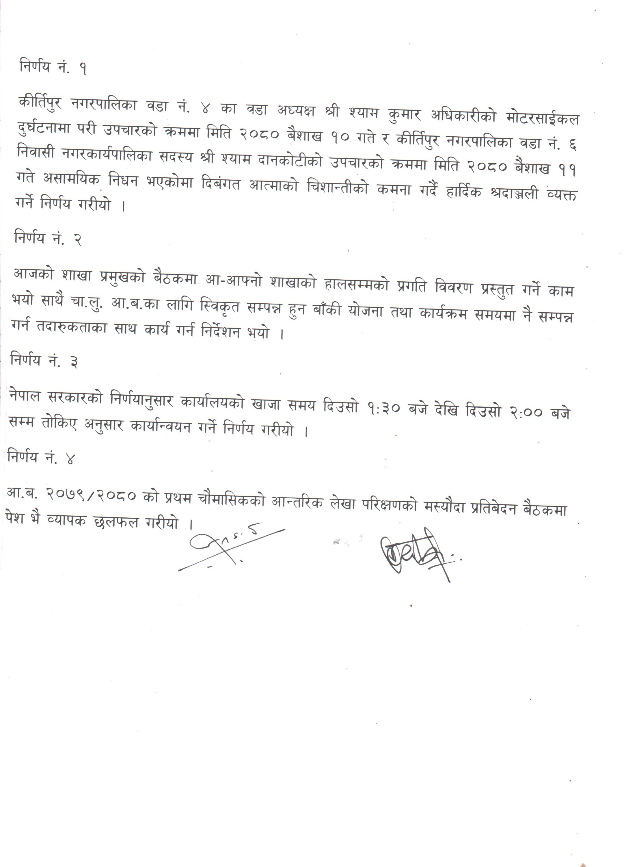 साँस्कृतिक र प्राकृतिक सम्पदायुक्त, शैक्षिक एवं पर्यटकीय शहर स्वच्छ हराभरा, समाबेशी तथा समुन्नत हाम्रो कीर्तिपुर नगर !