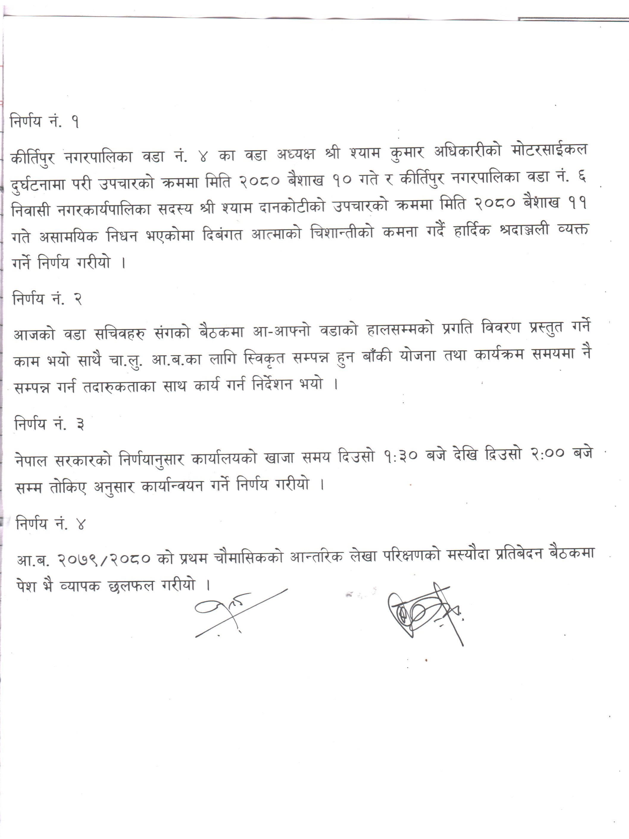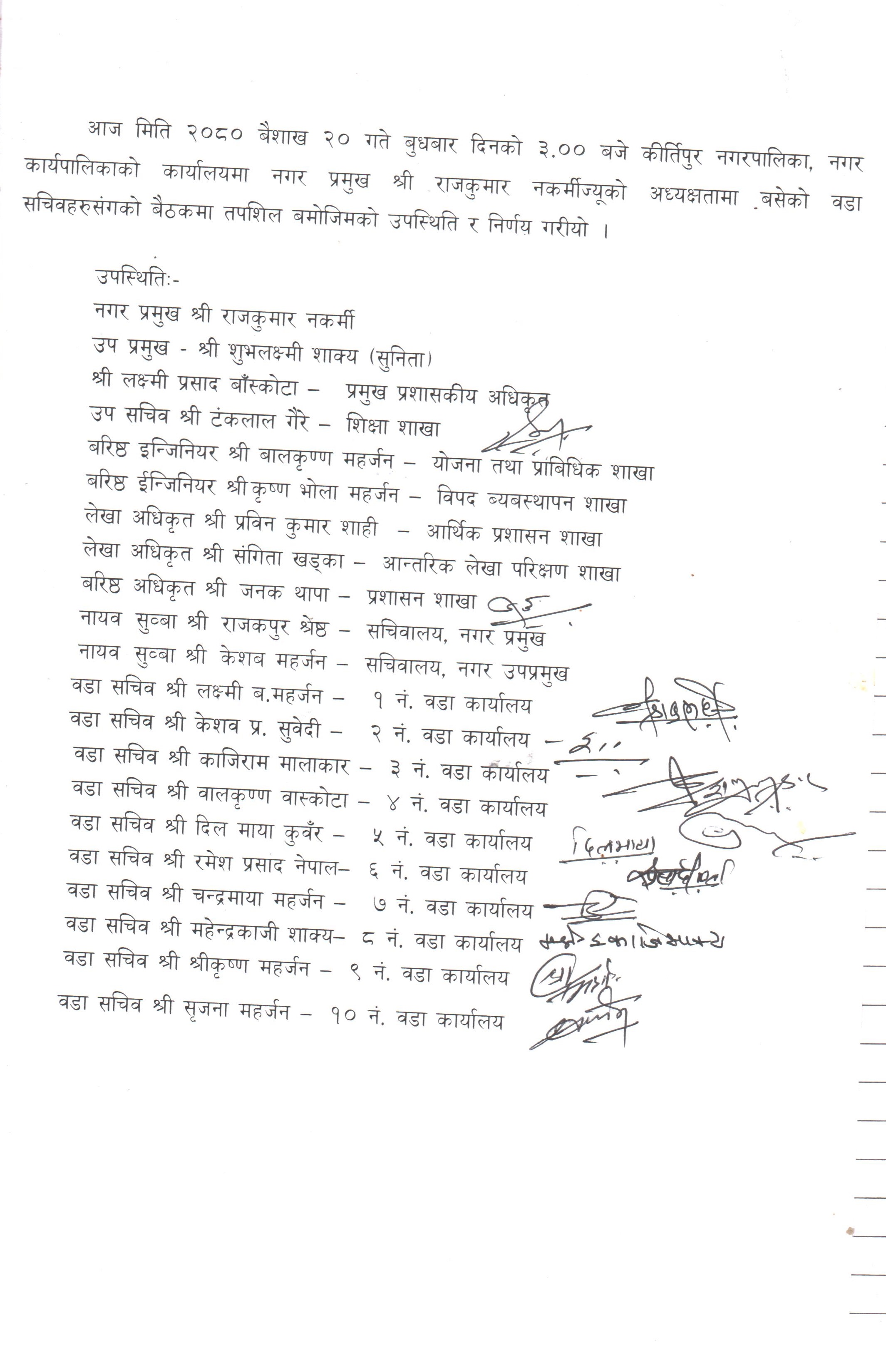 साँस्कृतिक र प्राकृतिक सम्पदायुक्त, शैक्षिक एवं पर्यटकीय शहर स्वच्छ हराभरा, समाबेशी तथा समुन्नत हाम्रो कीर्तिपुर नगर !
