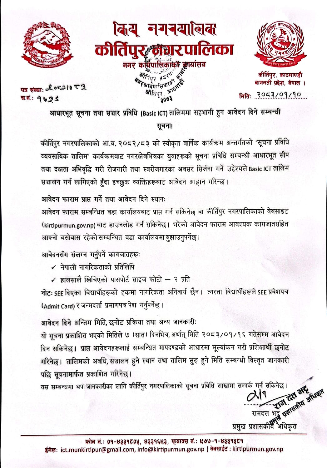 आधारभूत सूचना तथा सञ्चार प्रविधि (Basic ICT) तालिममा सहभागी हुन आवेदन दिने सम्बन्धी सूचना!
