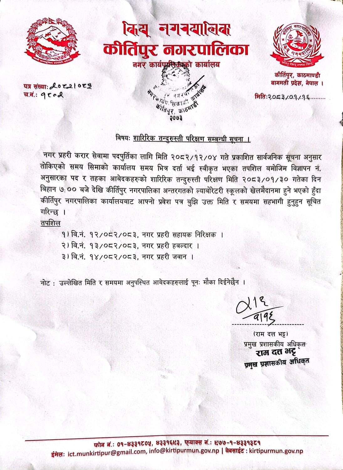 शारिरिक तन्दुरुस्ती परिक्षण सम्बन्धी सूचना। New